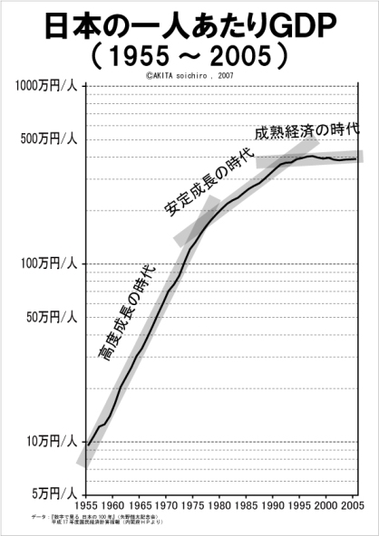 「日本の一人あたりGDP(1955~2005)」のグラフ