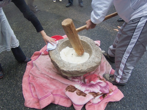 大会の様子(臼は石製)