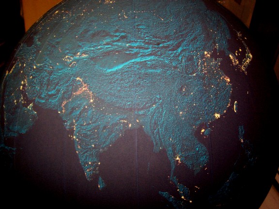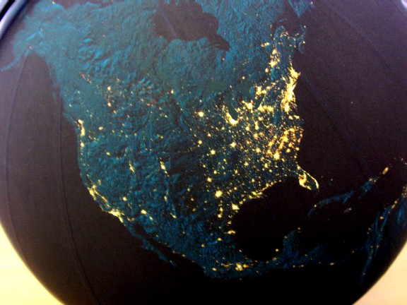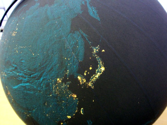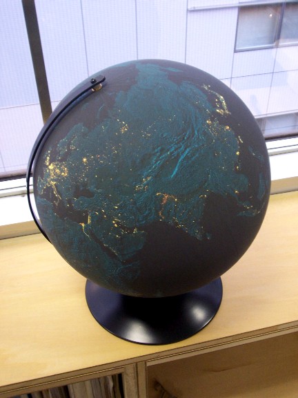 タイトルの写真は当社のオフィスにある「夜の地球儀」